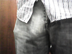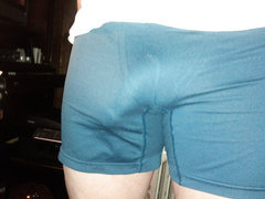 My hard cock trapped in pants or undershorts.
